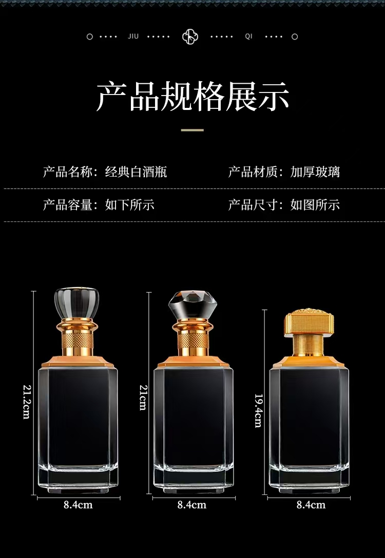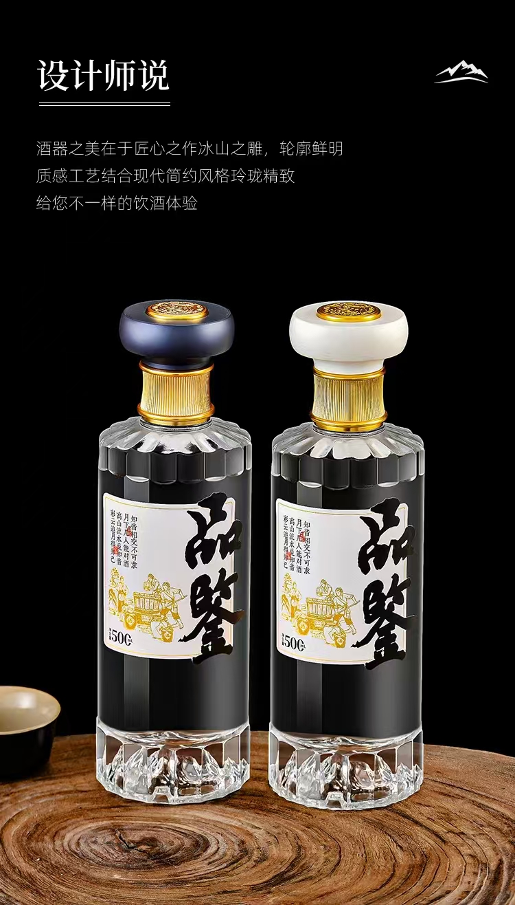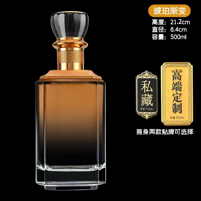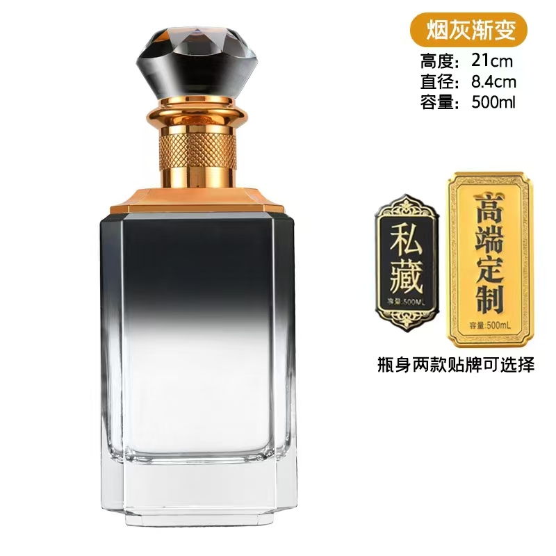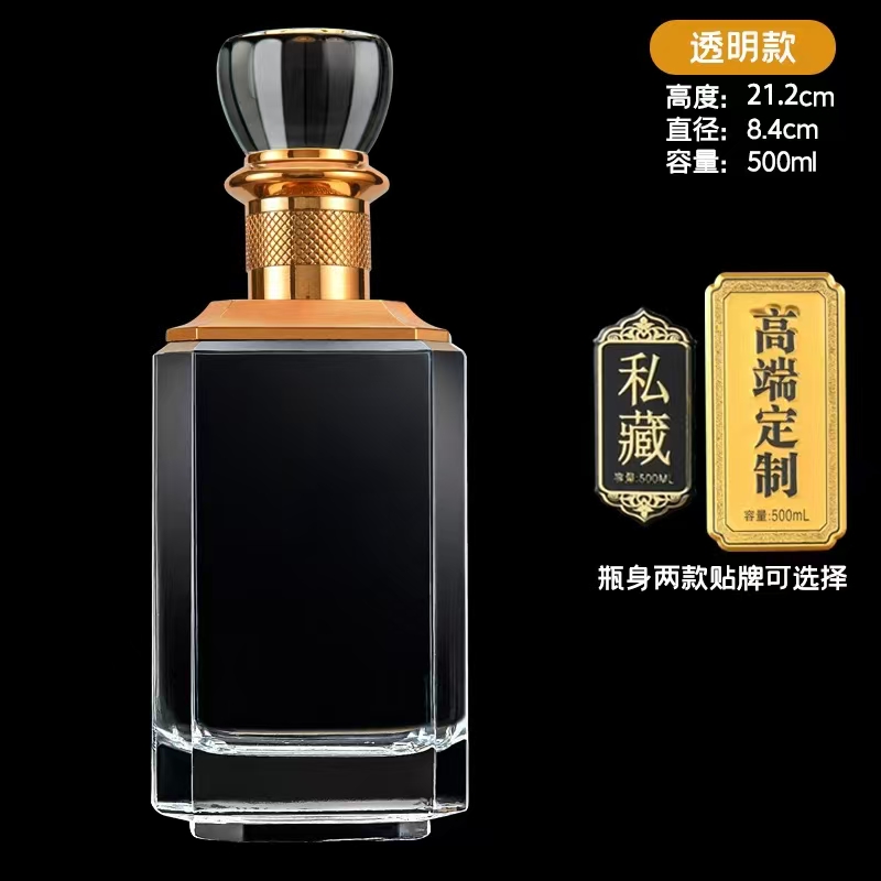 晶白酒瓶采用高透明度水晶玻璃材質(zhì),質(zhì)地堅硬、折射率高,呈現(xiàn)出晶瑩剔透的視覺效果。其原料中二氧化硅含量高,經(jīng)1600℃高溫熔煉成型,具備優(yōu)良的密封性與避光性,能有效保護酒體,提升陳藏價值。瓶身設(shè)計典雅,常用于中高端白酒包裝,兼具實用與收藏價值。