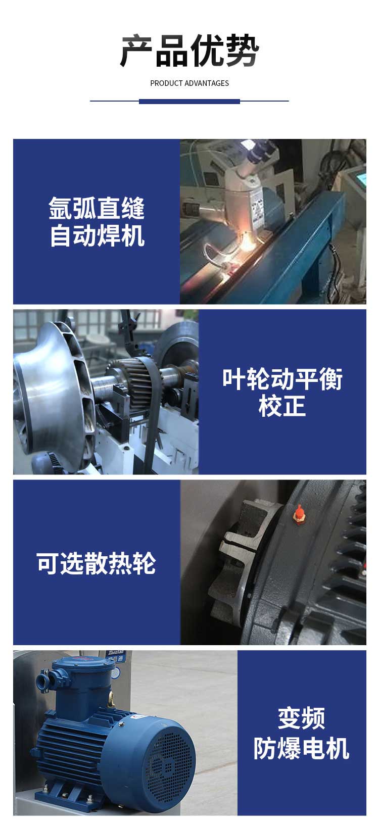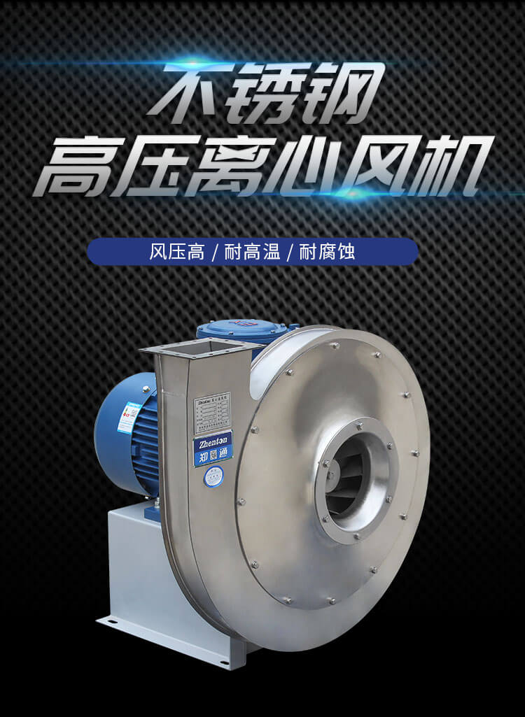 外殼及風(fēng)輪采用不銹鋼風(fēng)機材質(zhì)焊接而成,耐高溫,耐酸堿、防腐蝕