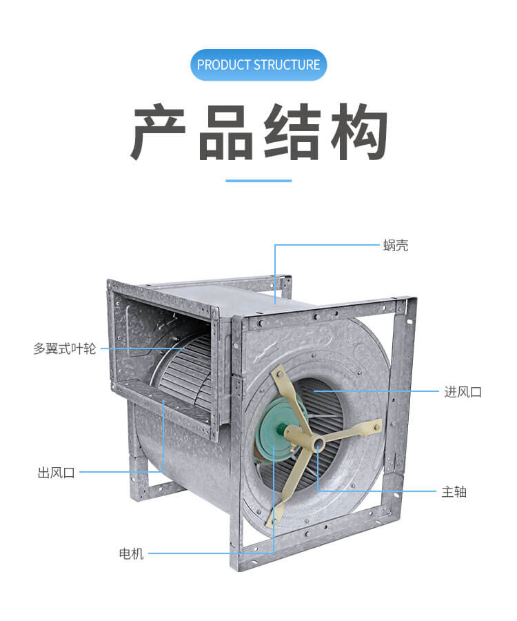 外轉(zhuǎn)子電機(jī)直聯(lián)雙進(jìn)風(fēng)通風(fēng)機(jī),前傾多翼葉輪、低噪音。
