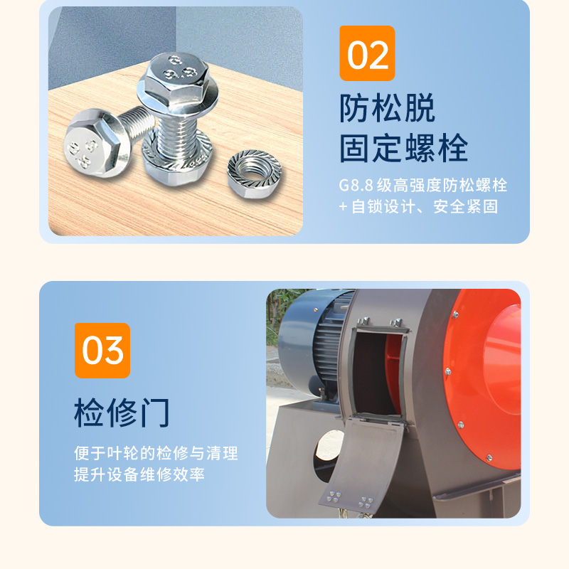 FC6-48物料輸送離心風機系列,糧食加工中輸送谷物、面粉,建材行業(yè)輸送水泥粉、石灰粉,化工領(lǐng)域輸送非腐蝕性顆粒原料,以及飼料廠輸送飼料粉、塑料廠輸送塑料顆粒等場景的物料輸送。整體采用加厚碳鋼蝸殼、圓弧形專用葉輪、純銅電機設(shè)計。質(zhì)量可靠,耐磨性能強噴塑烤漆工藝,不掉漆,不生銹,用個十年八年沒問題。