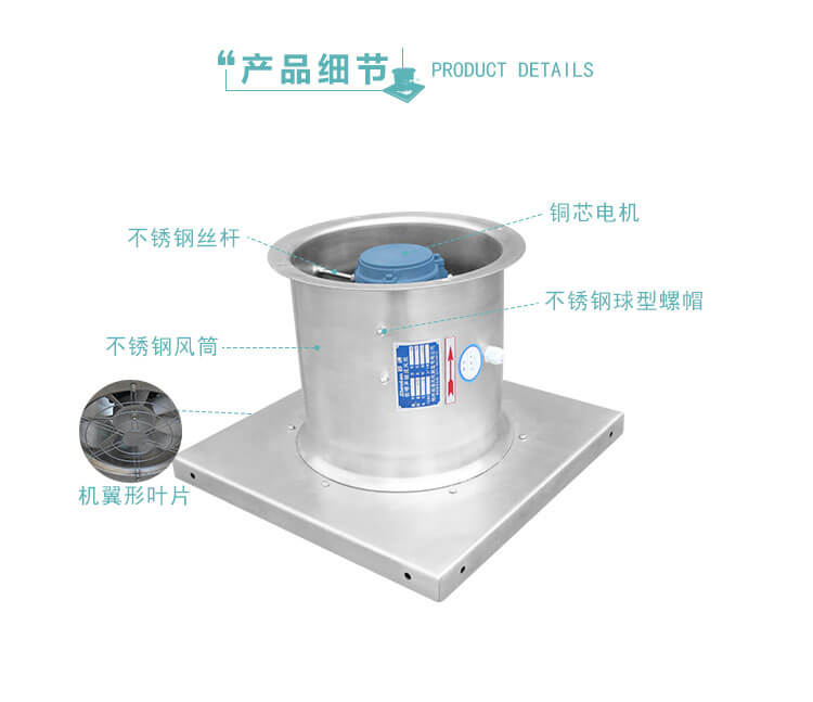底座及風筒采用優(yōu)質鋼板,風帽采用玻璃鋼精工制作而成。