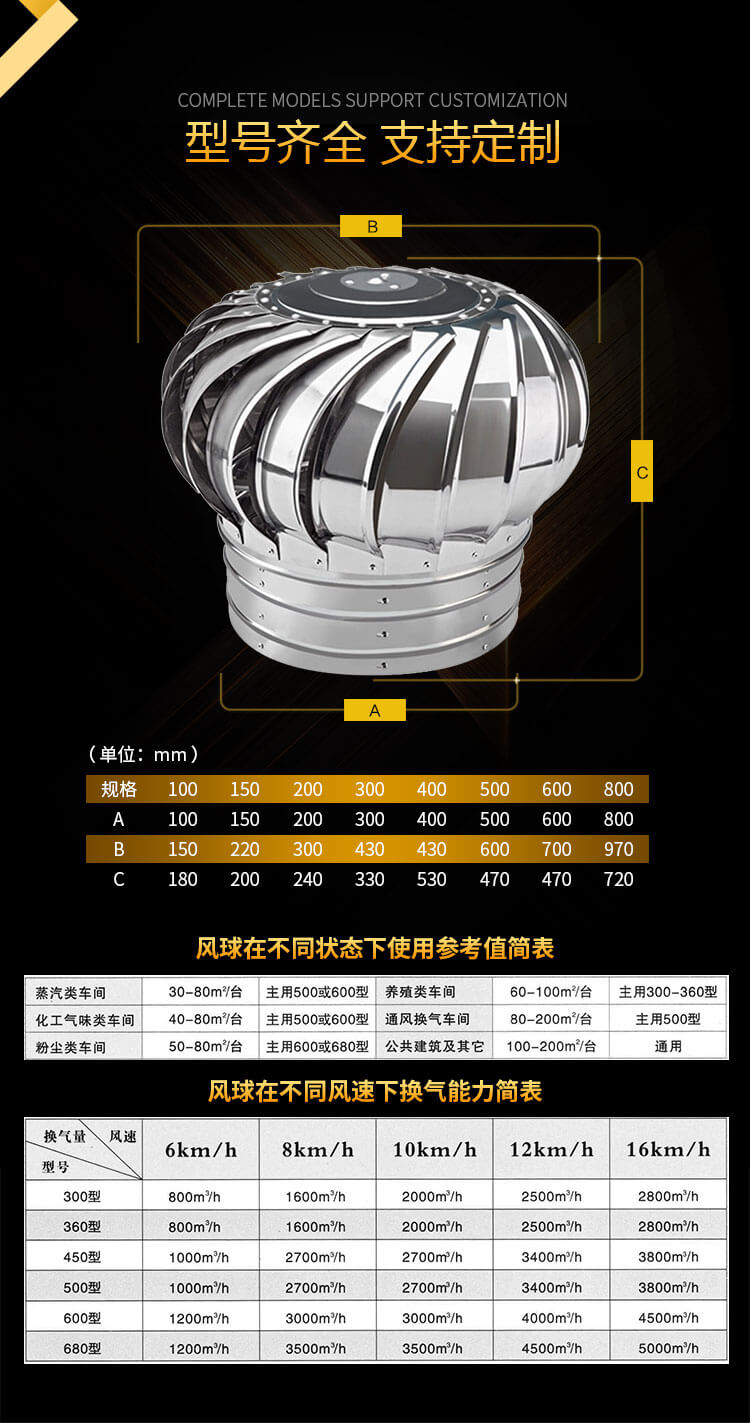 不銹鋼無(wú)動(dòng)力風(fēng)球適用于工廠、車間、廚房、餐廳、倉(cāng)庫(kù)、醫(yī)院等的通風(fēng)換氣。