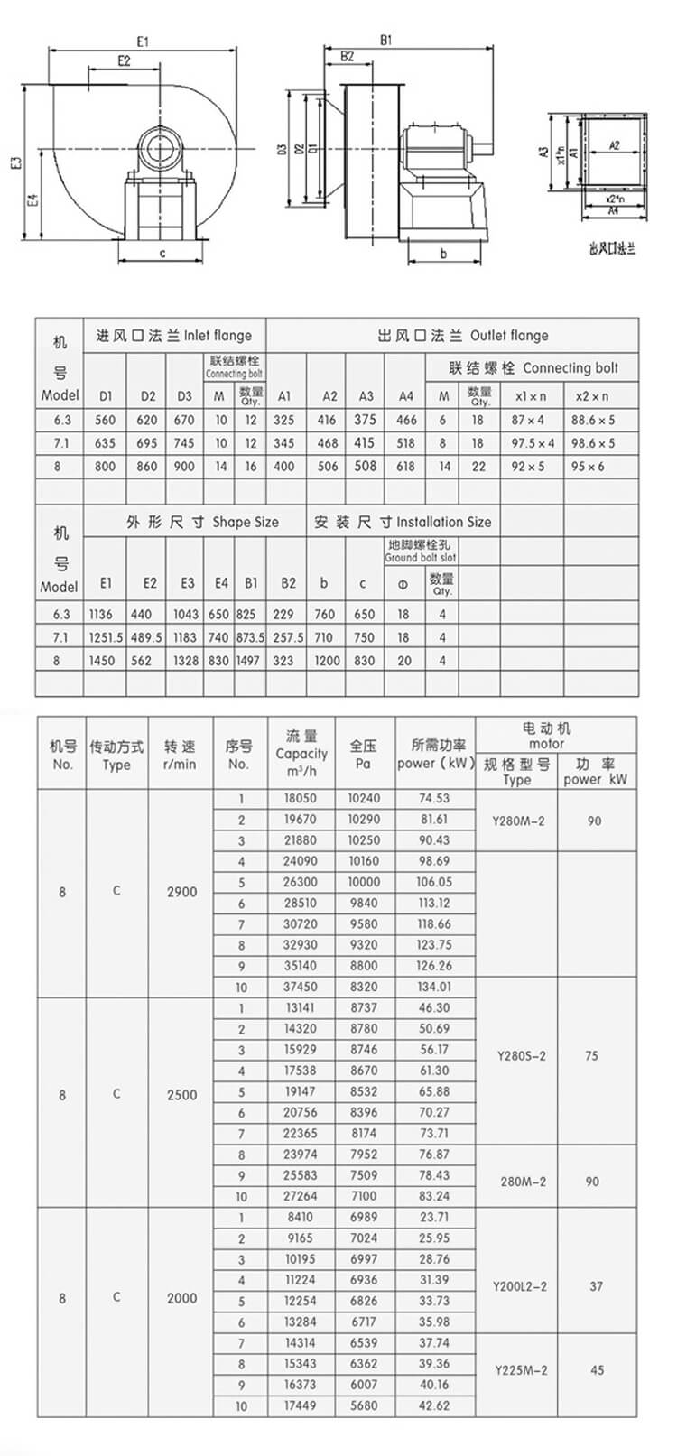 屬于高溫用途的高溫離心通風機,但氣體介質(zhì)溫度不能超過280攝氏度